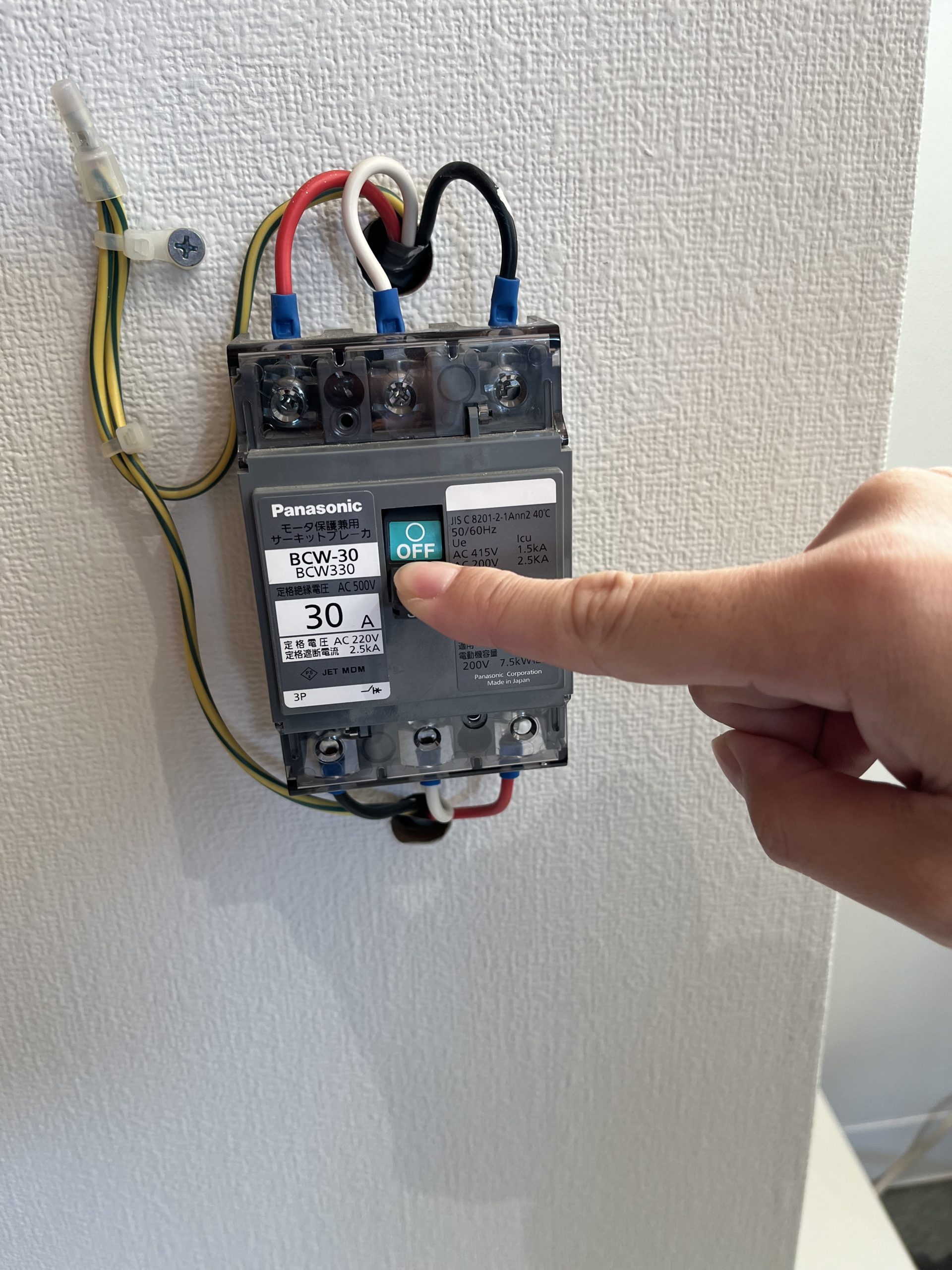 ・動力盤を確認してブレーカーをOFFにしてください。