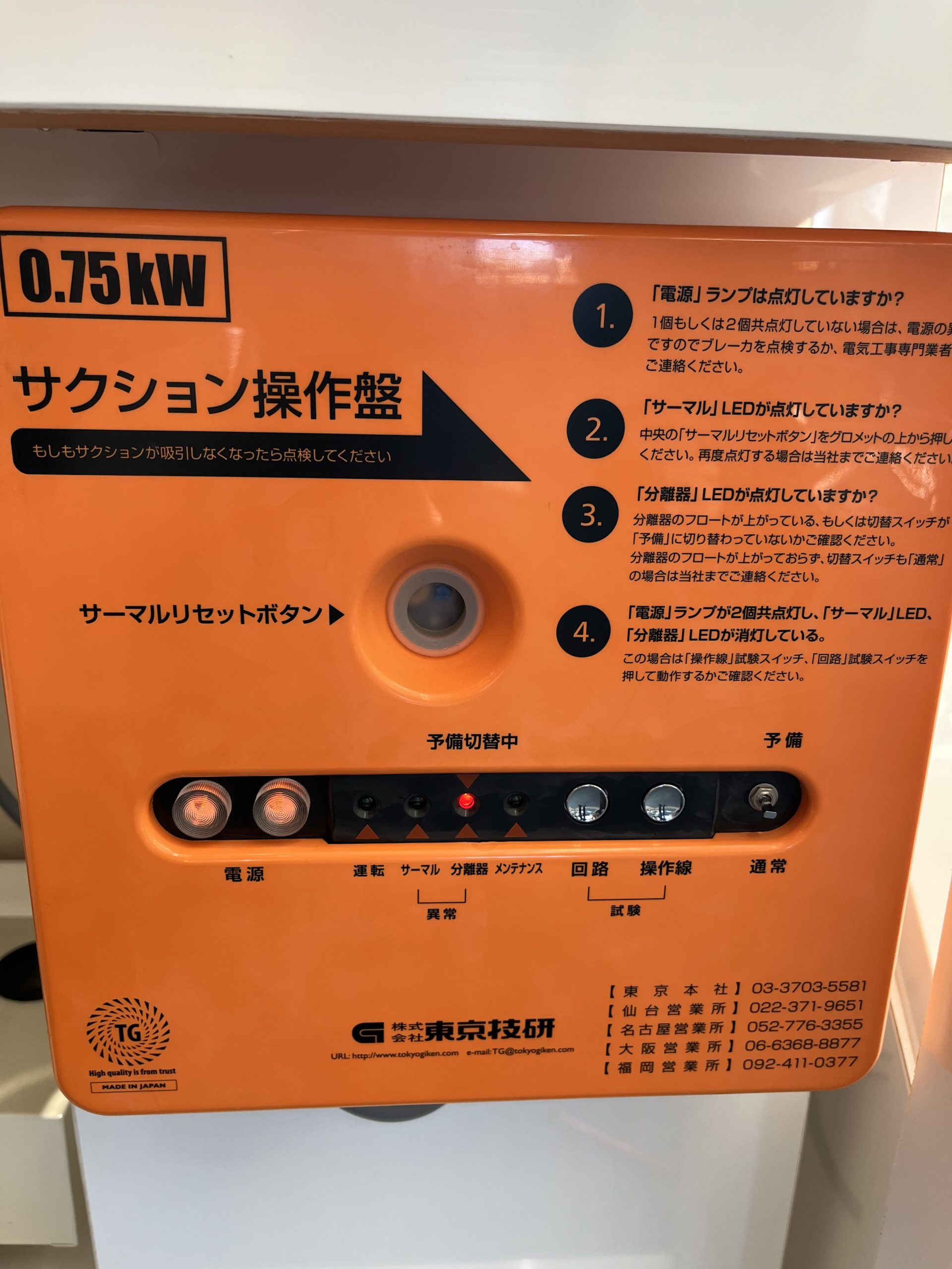 ・サクション操作盤の電源ランプ2灯が両方点灯しているか確認してください。